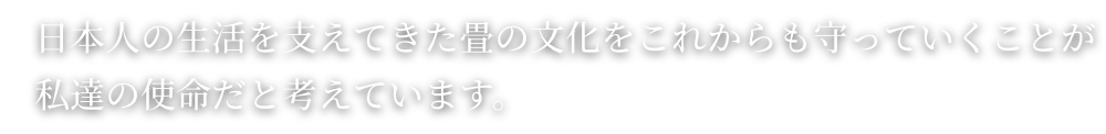 日本人の生活を支えてきた畳の文化をこれからも守っていくことが、私たちの使命だと考えています。